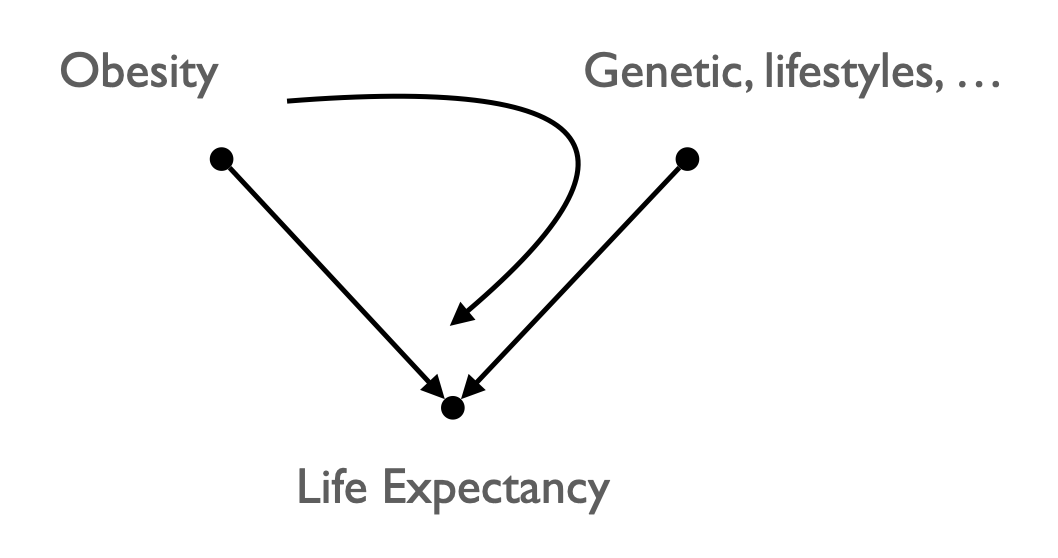 - 예를 들어, 비만이 사망율에 미치는 효과에 대한 과소추정
